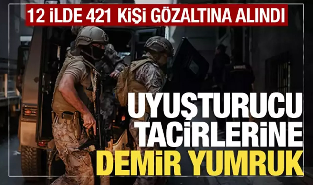 Eş zamanlı olarak 338 farklı adrese baskın düzenledik ve 421 şahsı gözaltına aldık. Operasyonumuz sahada devam ediyor. Örgütlü yapıları, lojistik ağları ve aracılık eden torbacıları tek tek enseliyoruz.'' diye konuştu.