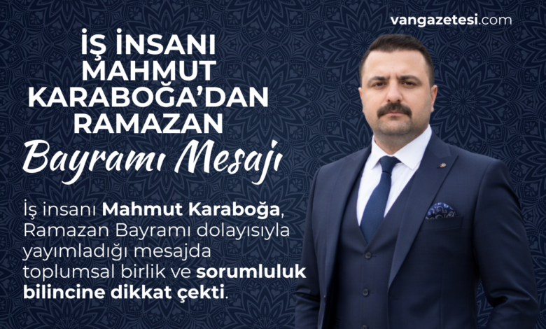 VAN HABER – İş insanı Mahmut Karaboğa, Ramazan Bayramı dolayısıyla yayımladığı mesajda toplumsal birlik ve sorumluluk bilincine dikkat çekti.
